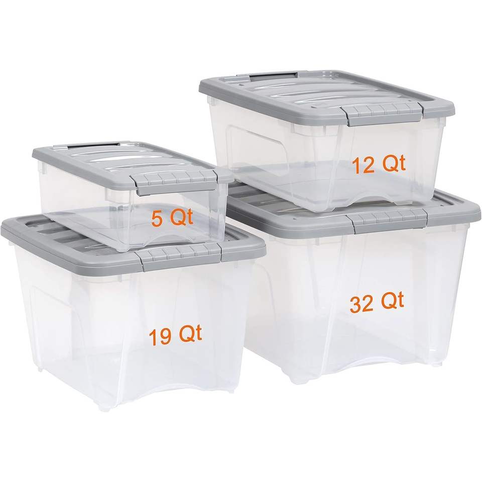 Set di 10 Contenitori di Plastica Trasparenti/Grigie da 5 Quarti con Coperchi a Chiusura Sicura, Impilabili per un'Organizzazione Efficiente dello Spazio