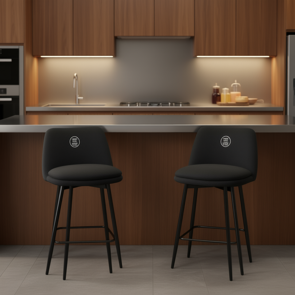 Sgabelli da bar imbottiti, altezza seduta 25,6 pollici, base girevole in metallo, set di 2 mobili da bar contemporanei per cucina