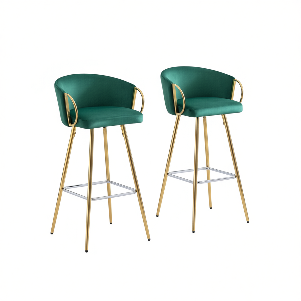 Sgabelli da Bar in Velluto Verde con Base Cromata e Gambe Dorate da 26 Pollici, Arredamento Moderno per Bar
