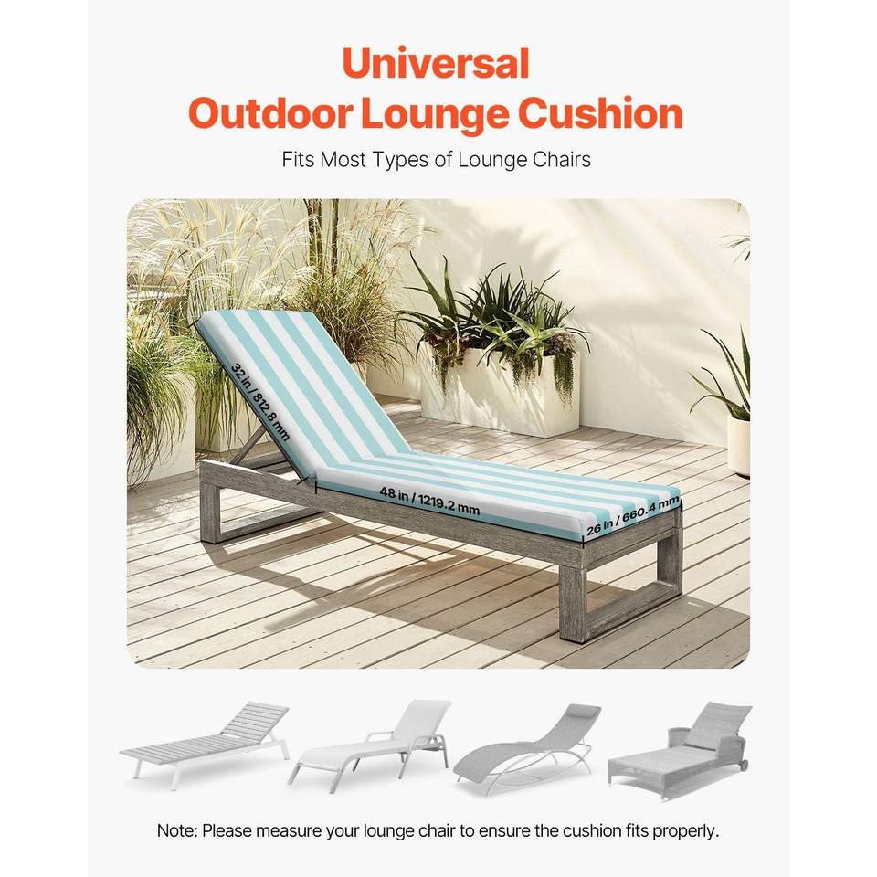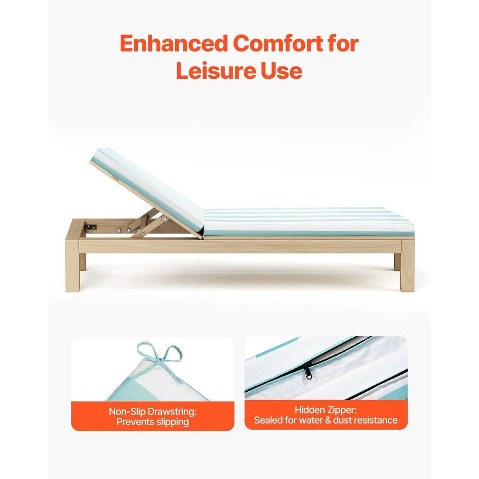 Set 2 Outdoor Waterproof Sun Lounger Cushions-80 X 26 X 4 Inch Chaise Lounge Pads Ties Green White Stripes for Patio Pool Deck