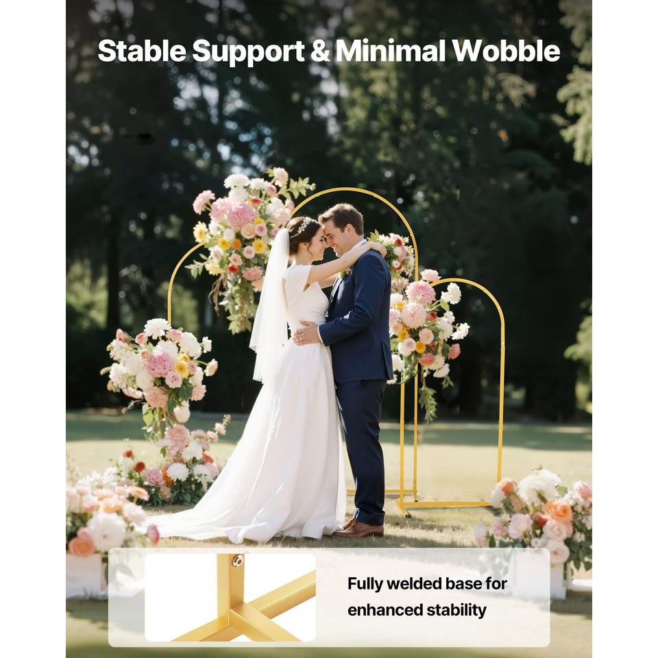 Set di 3 Supporti ad Arco in Metallo Dorato 6/5/4 ft, Struttura Stabile, Facile Montaggio per Matrimoni e Compleanni
