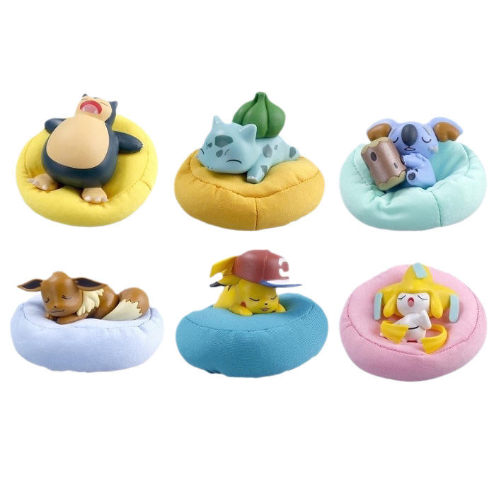 Set di 6 Modelli di Action Figure in PVC Fatti a Mano, Personaggi di Videogiochi e Anime in Posa Dormiente, POKE, in Plastica Durevole, Cartone Animato Giapponese da Collezione