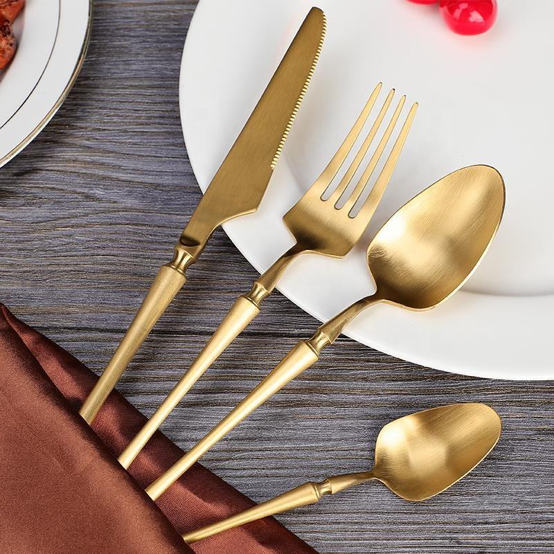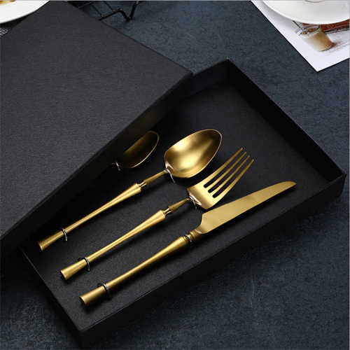 Set Gold Stainless Steel Wholesale Silver Travel Flatware Black Box Packaging Luxury Golden Rose Spoon Cutlery