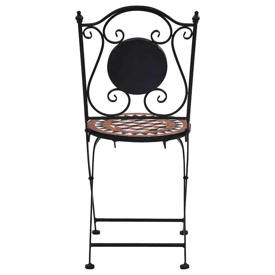 Set di 2 sedie da giardino pieghevoli in metallo con schienale e seduta in mosaico, mobili da esterno, struttura in acciaio in stile mediterraneo