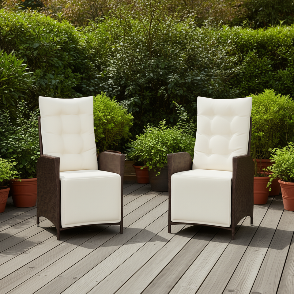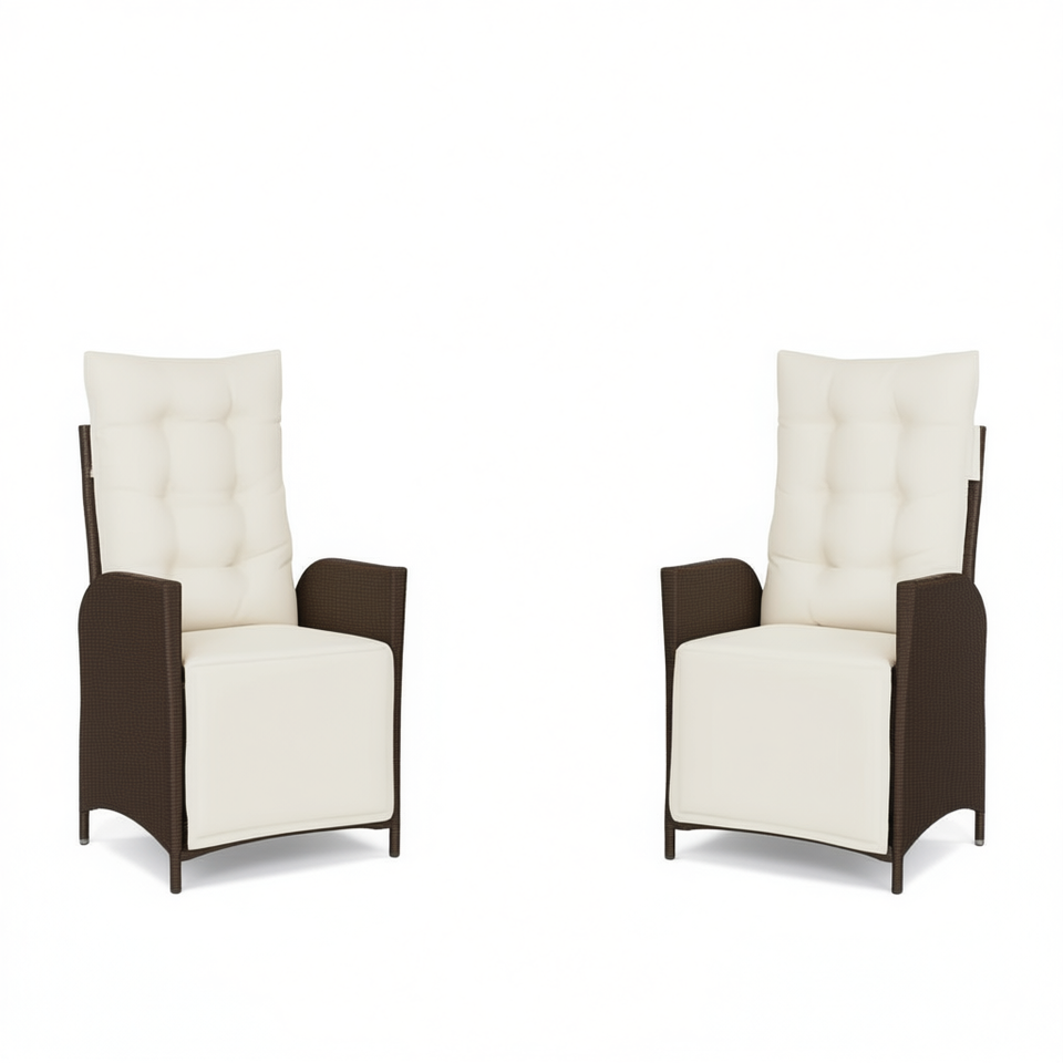 Set di 2 sedie da giardino reclinabili in rattan marrone, mobili da patio standard per uso esterno