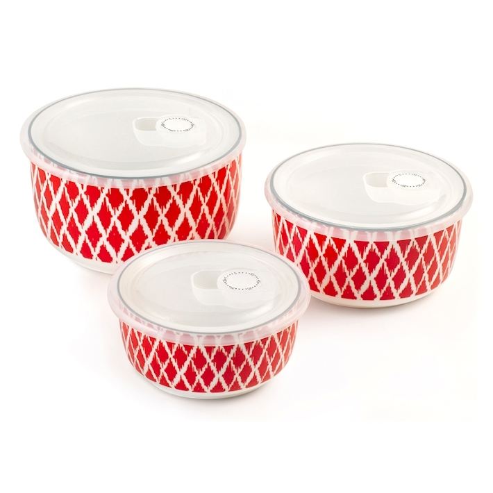Set di 3 Contenitori per Alimenti con Coperchi 360 620 1000 Ml Design con Motivo Rosso