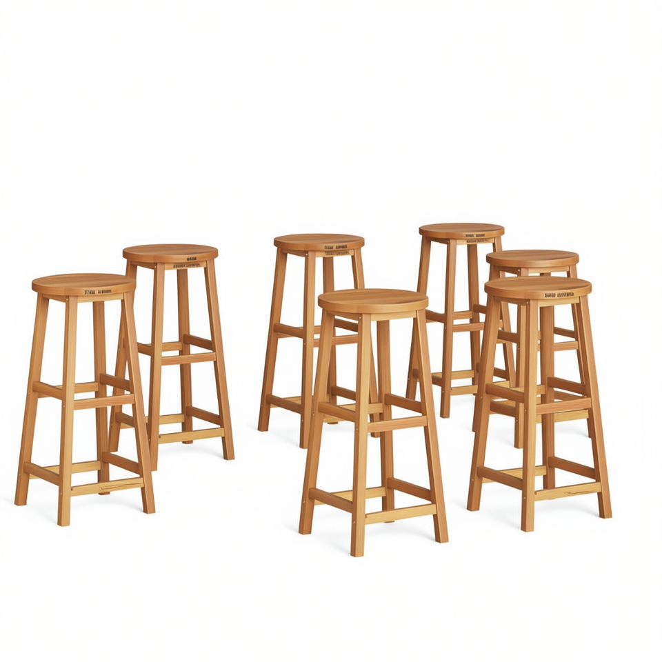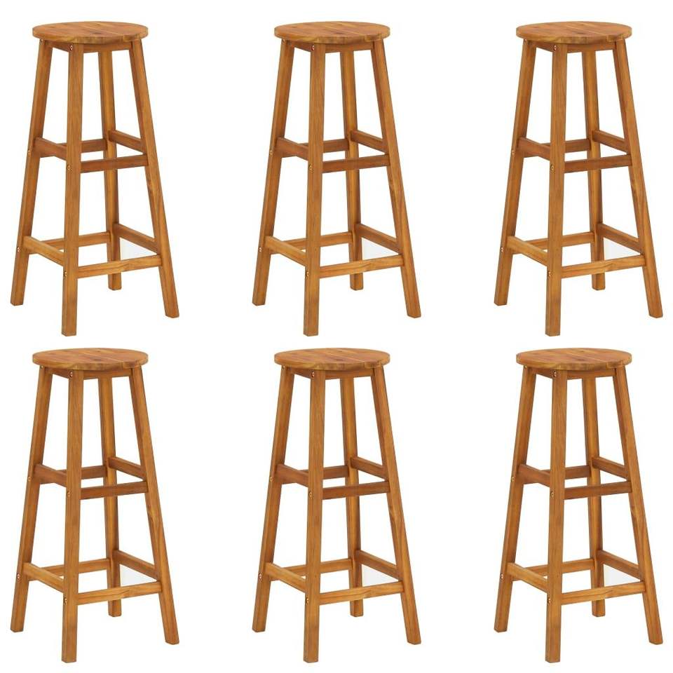 Set di 6 sgabelli da bar in legno di acacia marrone con poggiapiedi standard per bar domestico