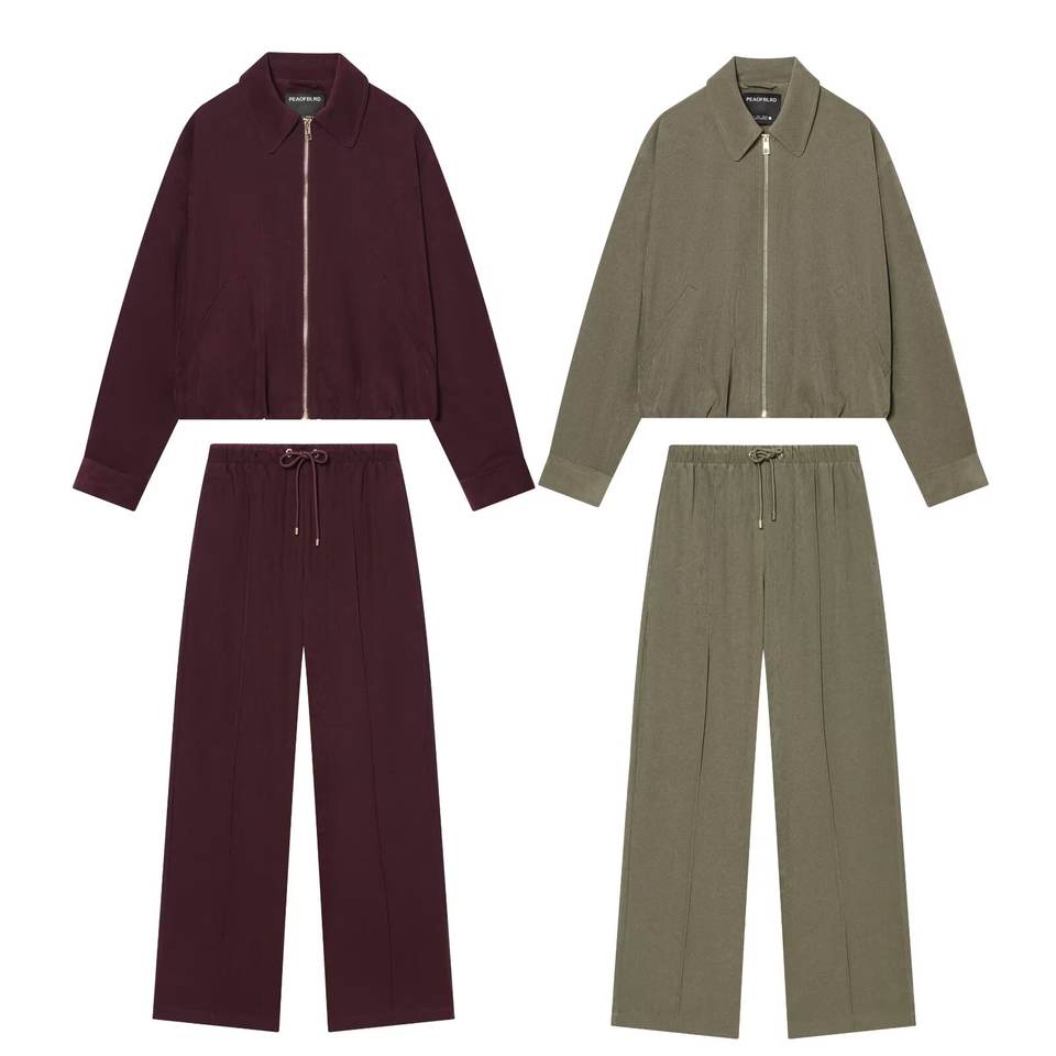 Set Women's 2026 new 2-piece suit casual fashion lapel zipper coat+retro women's elastic waist wide leg pants suit