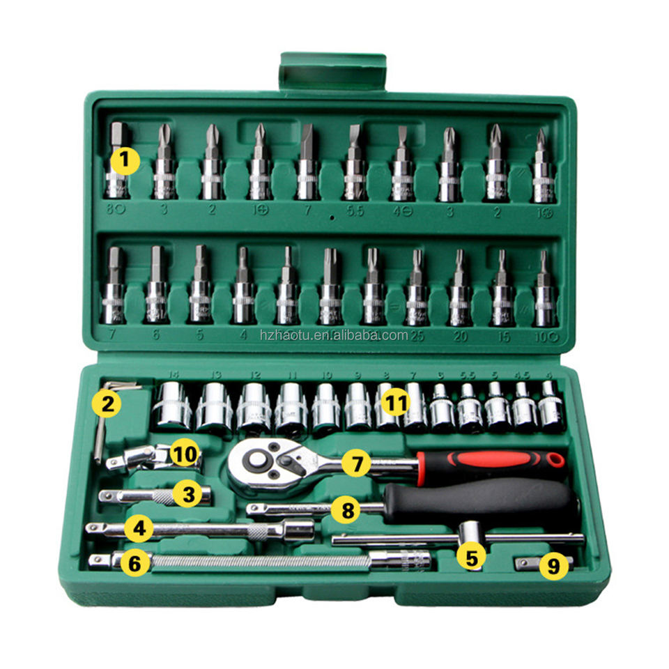 Set di chiavi a bussola 46pcs per strumenti di riparazione auto domestiche con scatola di plastica