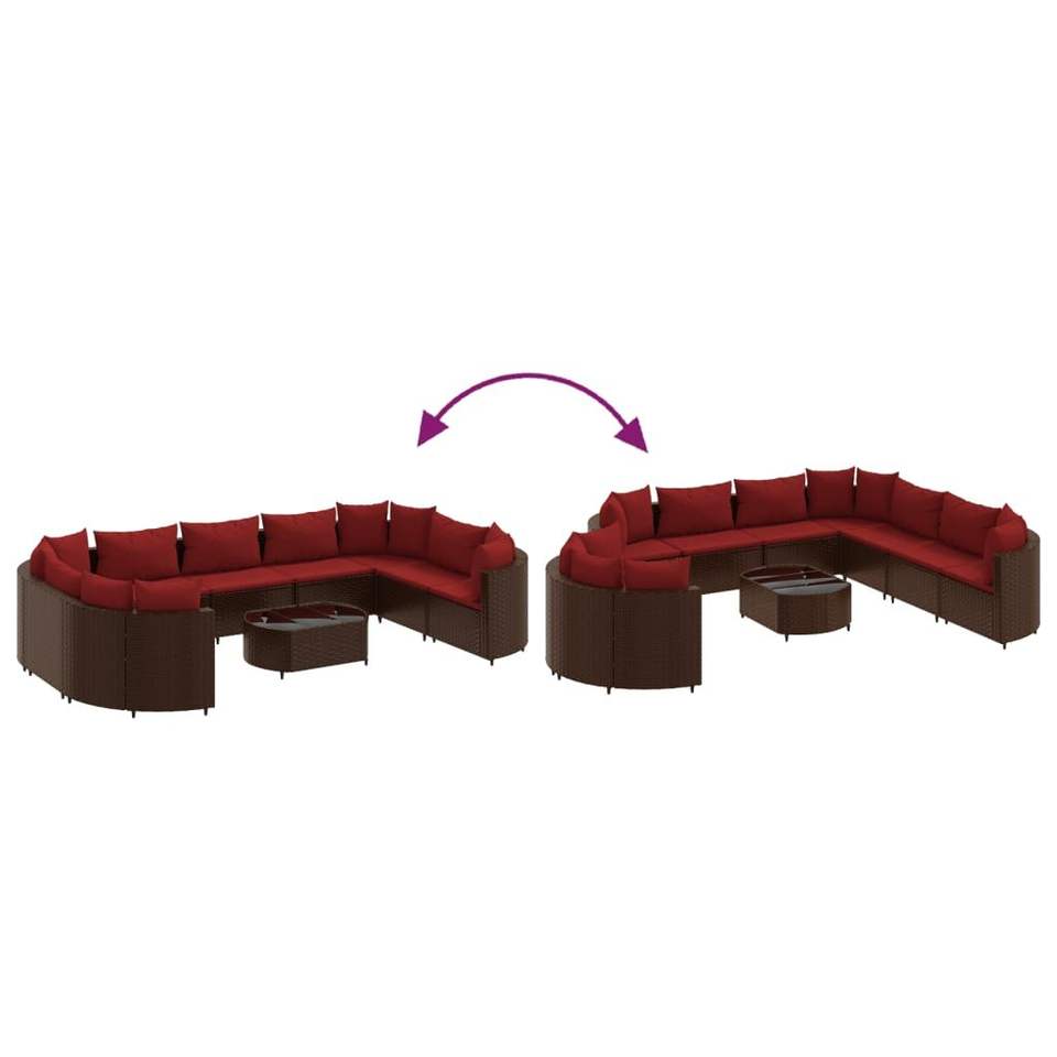 Set di 10 Divani da Esterno in Rattan PE Marrone con Piedini Regolabili, Mobili da Giardino Durevoli