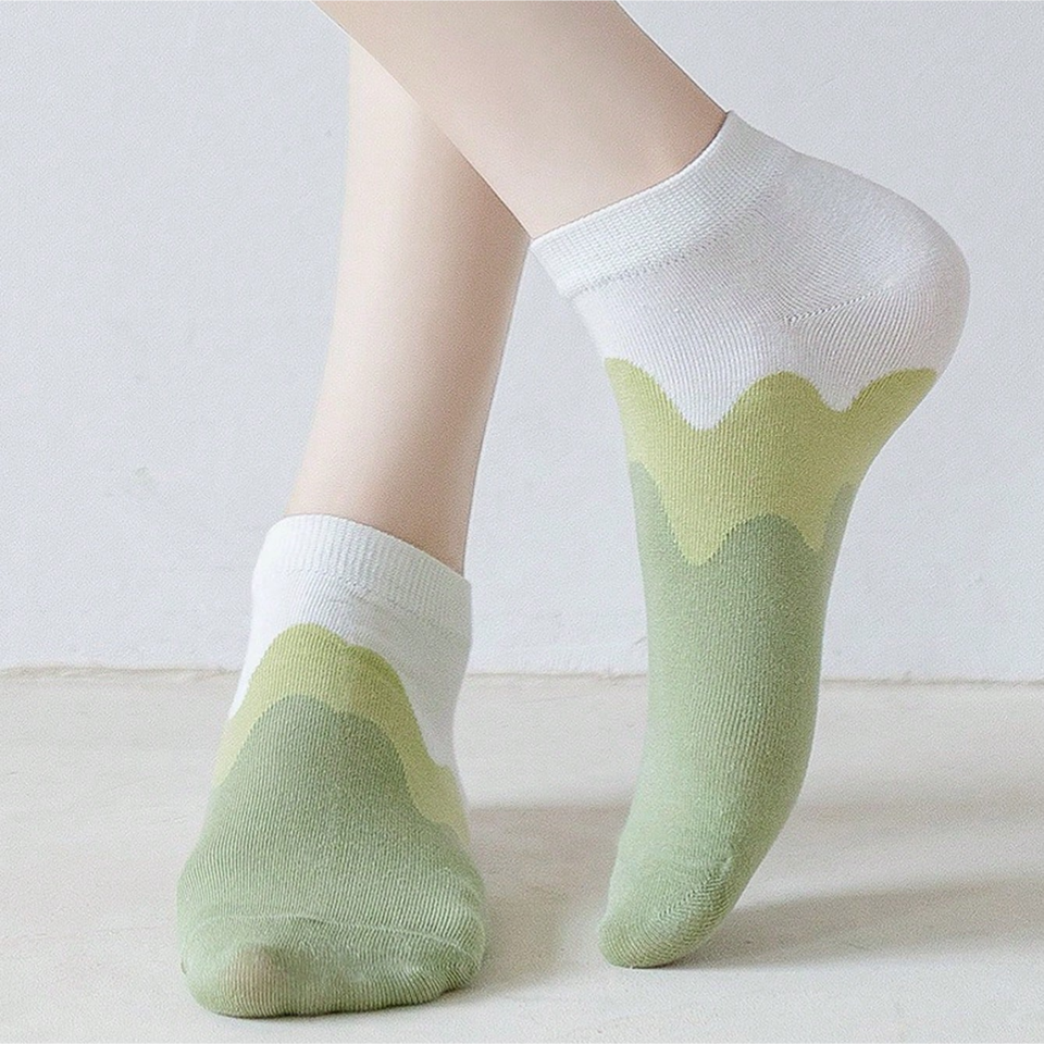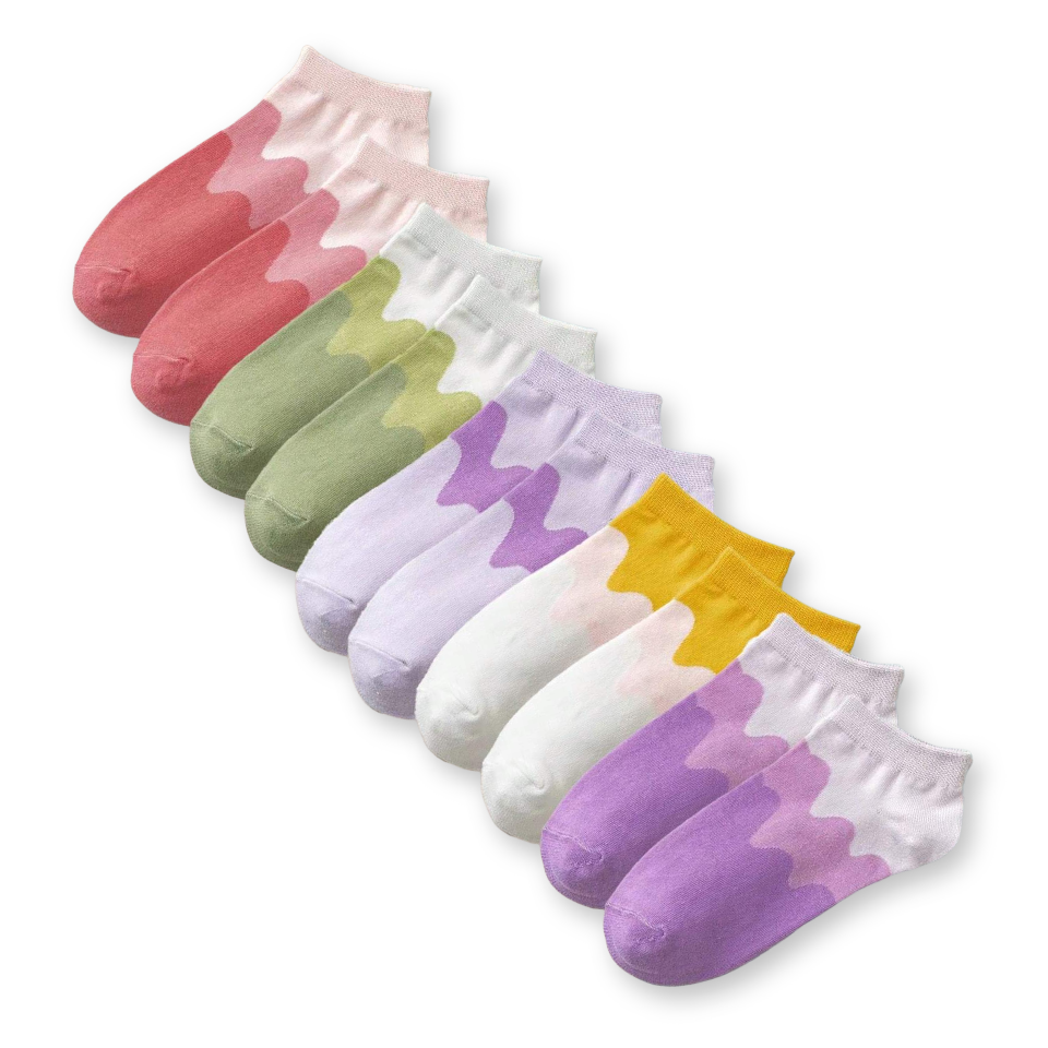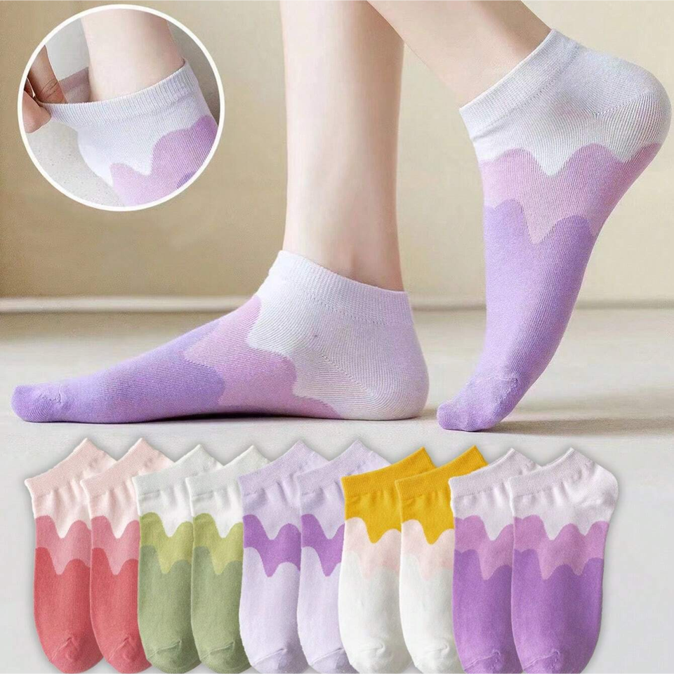 Set of 10 pairs of women's gradient color ankle socks, comfortable high-elastic socks with three-color stitching