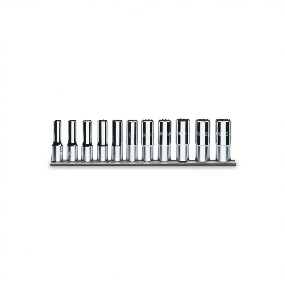Set di 11 Chiavi a Bussola Lunghe con Testa Poligonale (Articolo 920BL) su Supporto