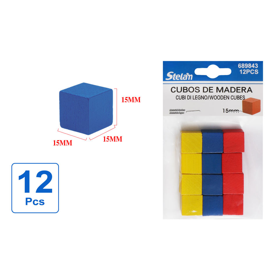 Set of 12 Colorful 15mm Wooden Cubes Bamboo and Wood Crafts for DIY Projects and Crafts 12 Pcs