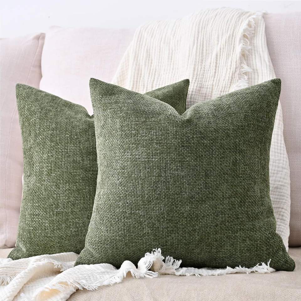 Set di 2 Copricuscini Decorativi in Ciniglia e Lino 18x18 Pollici, Stile Rustico Texturizzato per Letto, Divano o Soggiorno