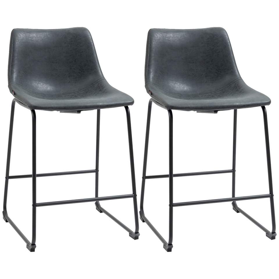 Set di 2 Sgabelli da Bar Alti 60 cm in Pelle PU Vintage con Schienale e Poggiapiedi per Sala da Pranzo o Bar di Casa