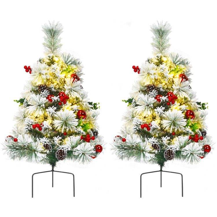 Set di 2 Alberi di Natale da Esterno Pre-Illuminati a Batteria da 60 cm, Effetto Neve, per Illuminazione Percorsi