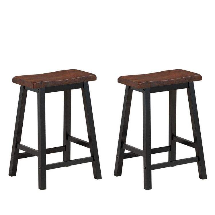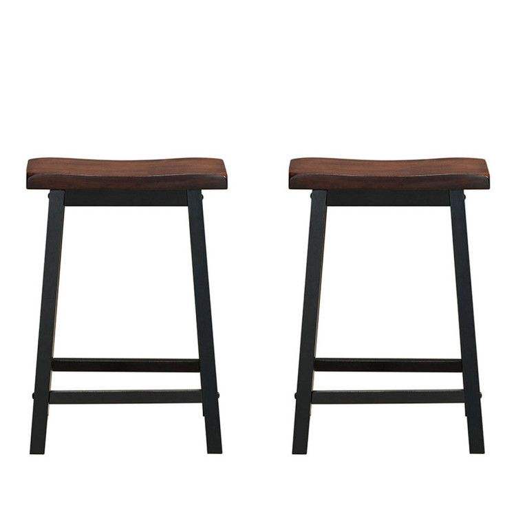 Set di 2 Sgabelli Alti da Cucina e Bar in Legno da 24 Pollici Senza Schienale