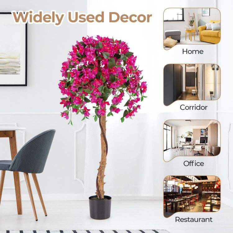 Set di 2 Alberi di Azalea Artificiali Alti 1,37 Metri con Vaso in Cemento Incluso