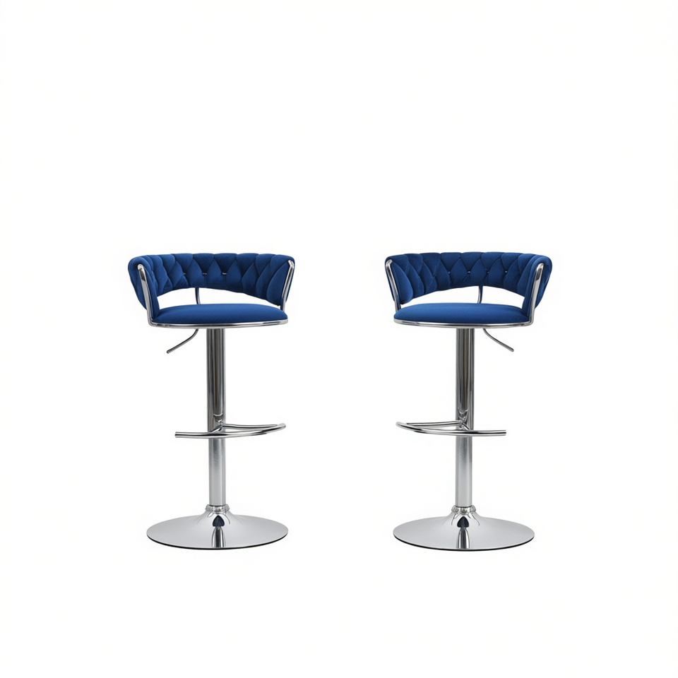 Adjustable Velvet Bar Stools Chrome Base Swivel Design Blue Set Of 2