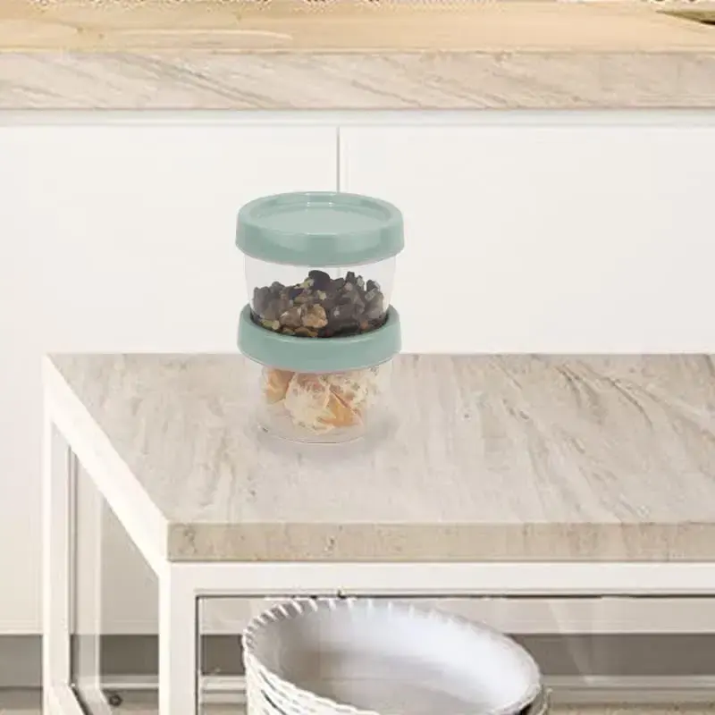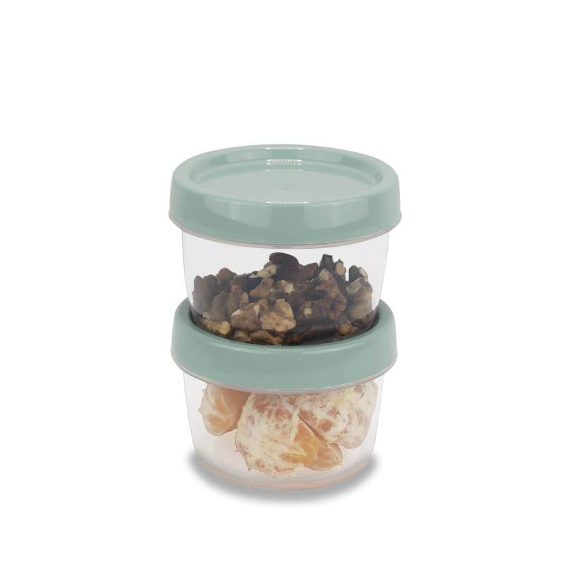 Set of 2 Airtight 200ml Plastic Food Storage Jars with Green/Pink/Beige Lids