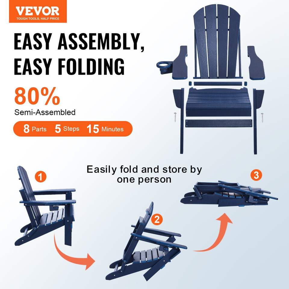 Set di 2 Sedie Adirondack Pieghevoli Portatili per Esterni con Portabicchieri, Resistenti alle Intemperie, per Braciere, in Plastica