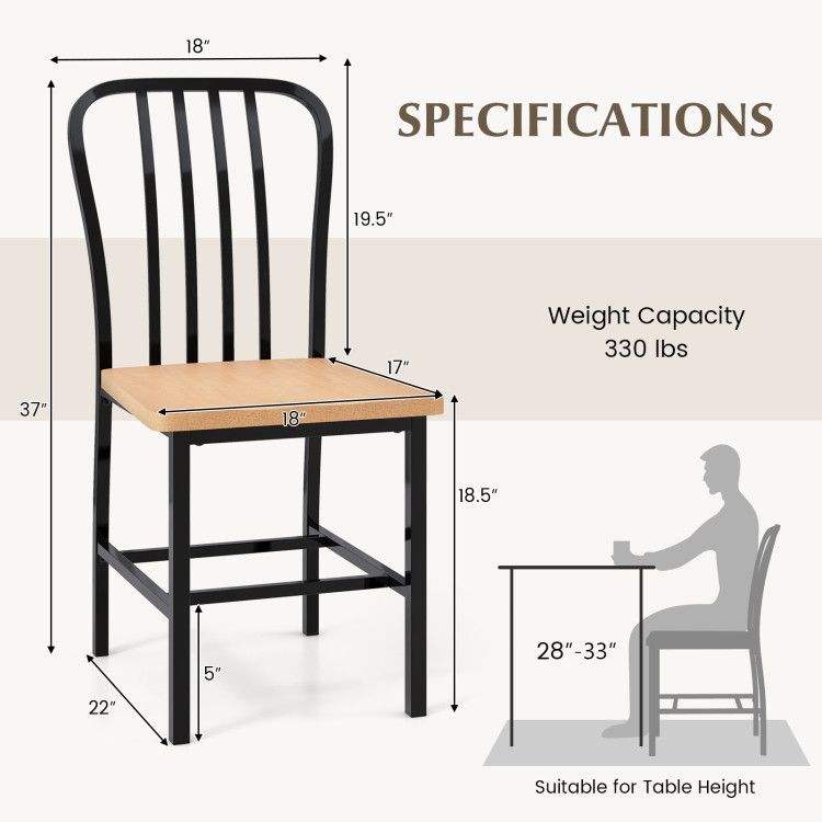 Set di 2 Sedie da Pranzo Senza Braccioli con Schienale a Fuso e Seduta Ergonomica