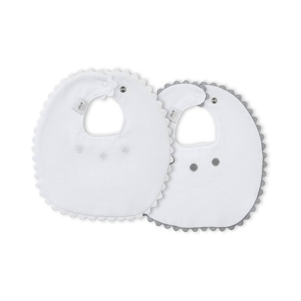 Set di 2 bavaglini 100% cotone organico grigio e bianco motivo floreale lavabile OEM fornitura per Saliva del bambino asciugamani