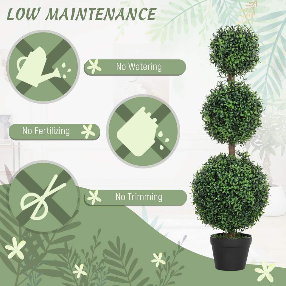 Set di 2 Alberi Artificiali di Bosso a Sfera per Interni ed Esterni, Piante Finte Verdi in Vaso Durevoli per Arredamento Casa