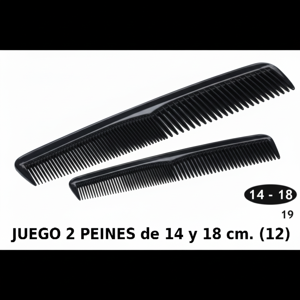 Set of 2 Black Hair Combs 14 and 18 cm 12/Units for Styling and Caring Essential Tool for Hair Care