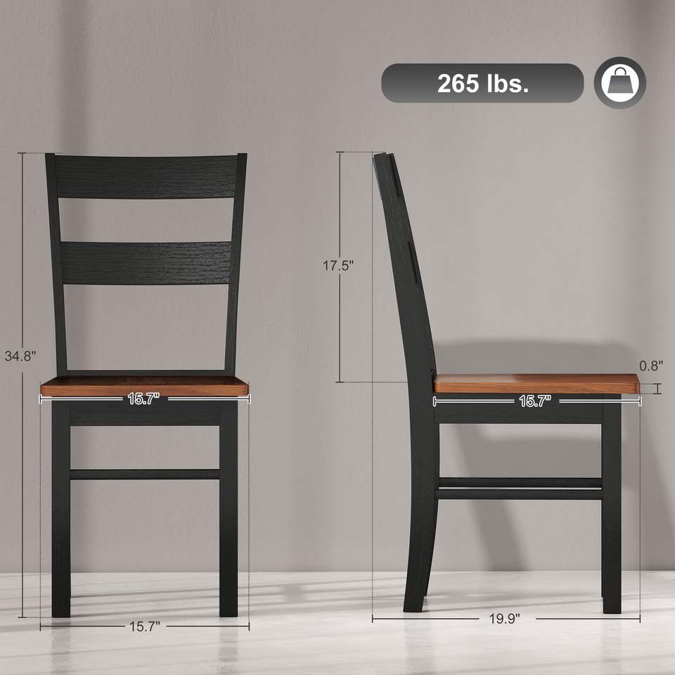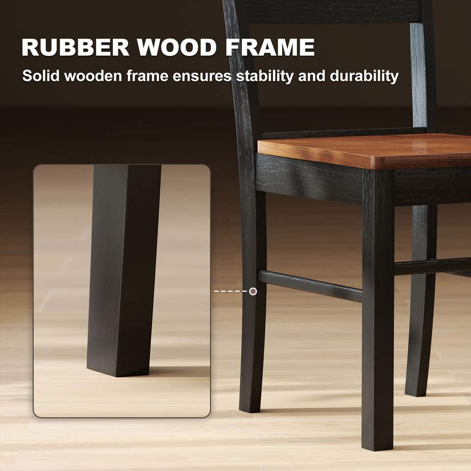 Set di 2 Sedie da Pranzo Nere Stile Rustico con Schienale Aperto in Legno di Gomma per Sala da Pranzo/Soggiorno