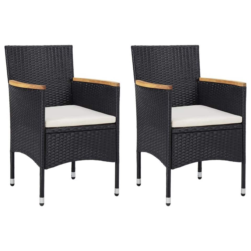 Set di 2 Sedie da Giardino in Polyrattan Nero, Dimensioni Standard