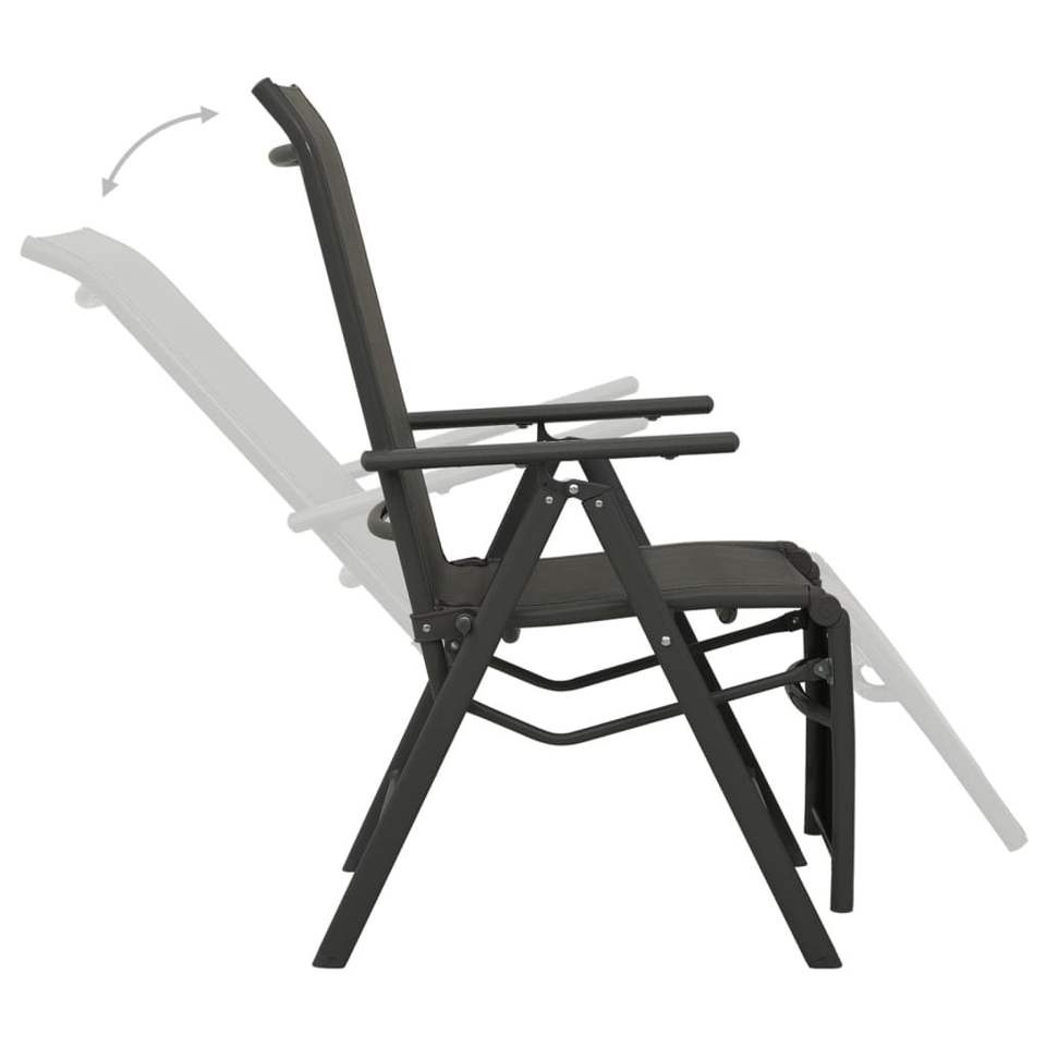 Set di 2 sedie da giardino in alluminio nero con seduta in Textilene, pieghevoli e reclinabili, dal design contemporaneo