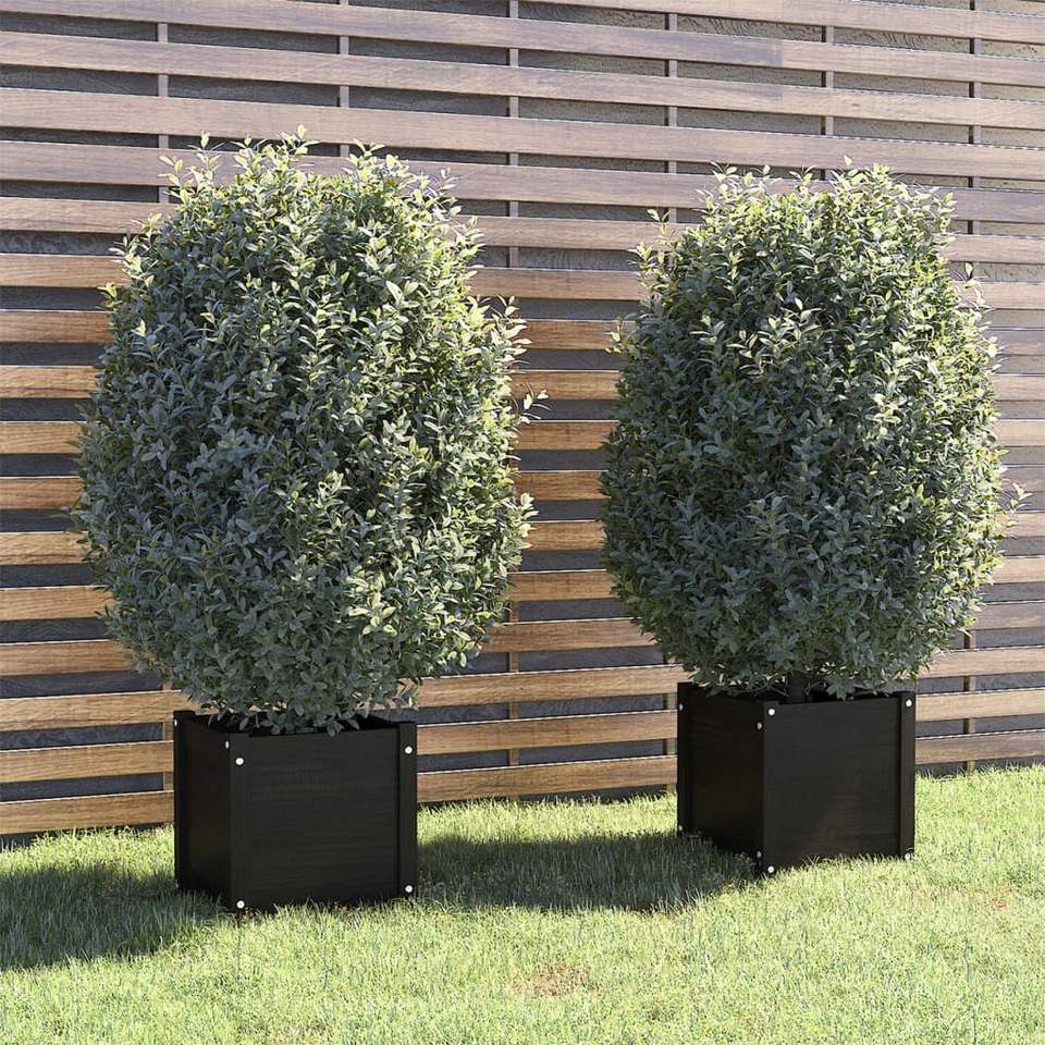 Set di 2 Vasi e Fioriere in Legno di Pino Nero Massiccio 15,7 X 15,7 X 15,7 Pollici