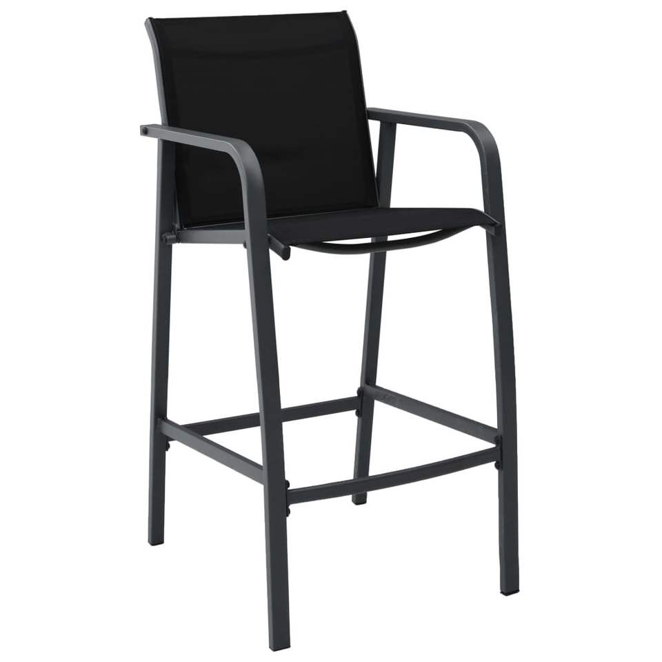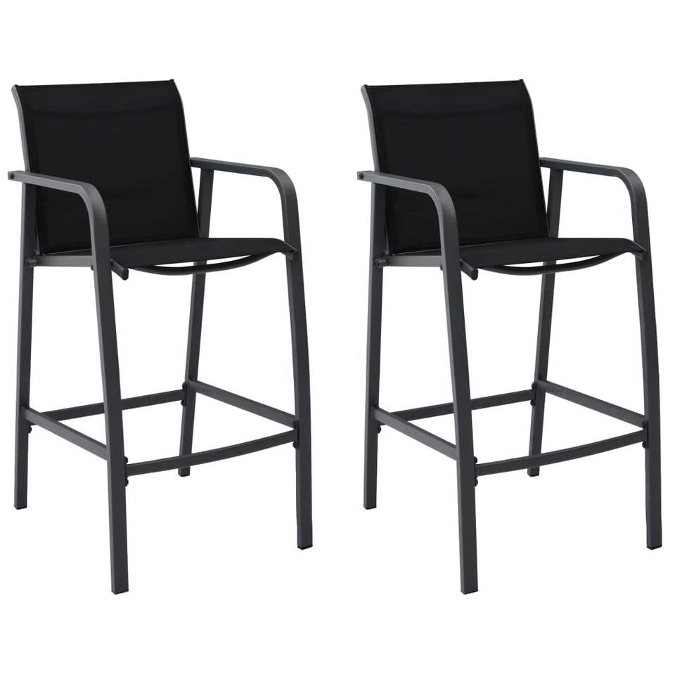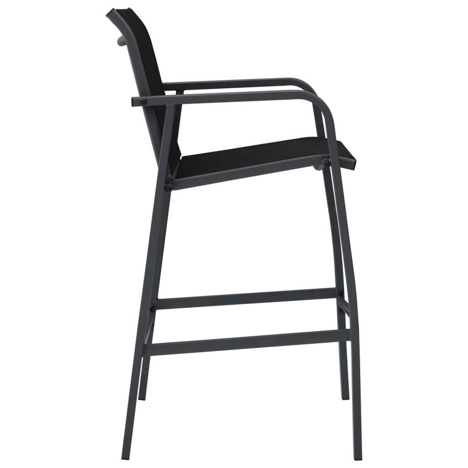 Set of 2 Black Steel Garden Bar Chairs with Textilene Standard Comfortable Outdoor Seating