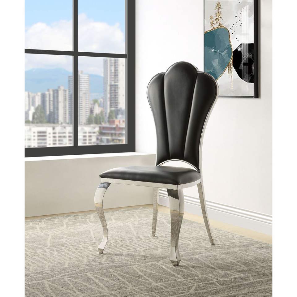 Set di 2 Sedie da Pranzo Nere con Schienale Trapuntato e Design Elegante