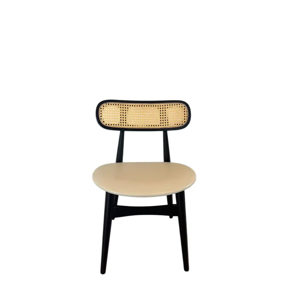Set of 2 Black Wood Dining Chairs with Rattan Backrest for Living Rooms Home Office Durable Leather Material Home Furniture
