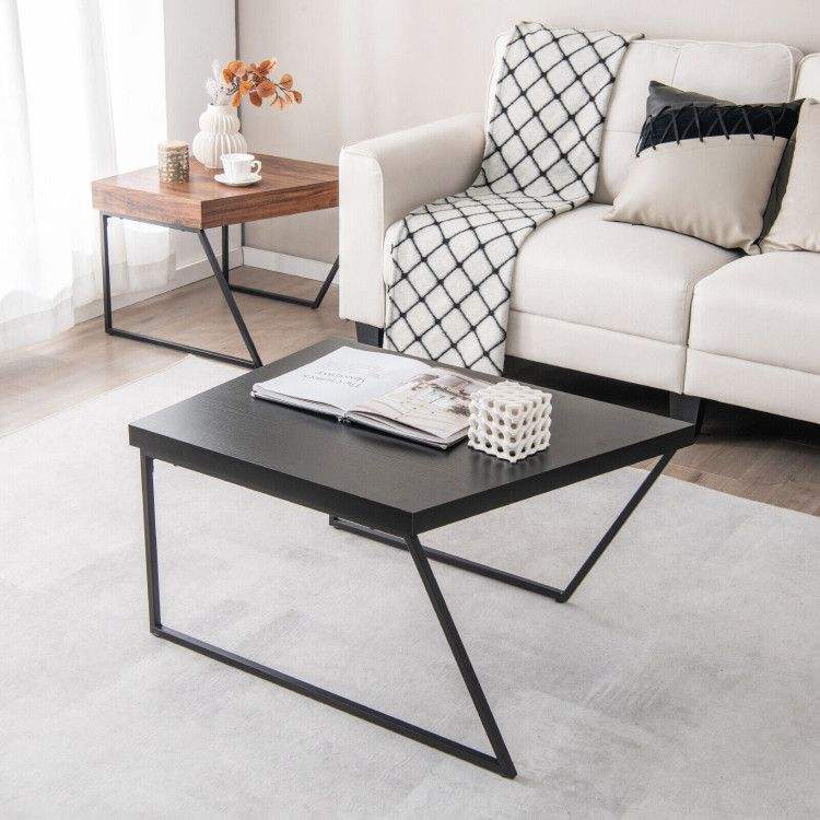 Set di 2 tavolini da caffè con gambe in metallo verniciato a polvere