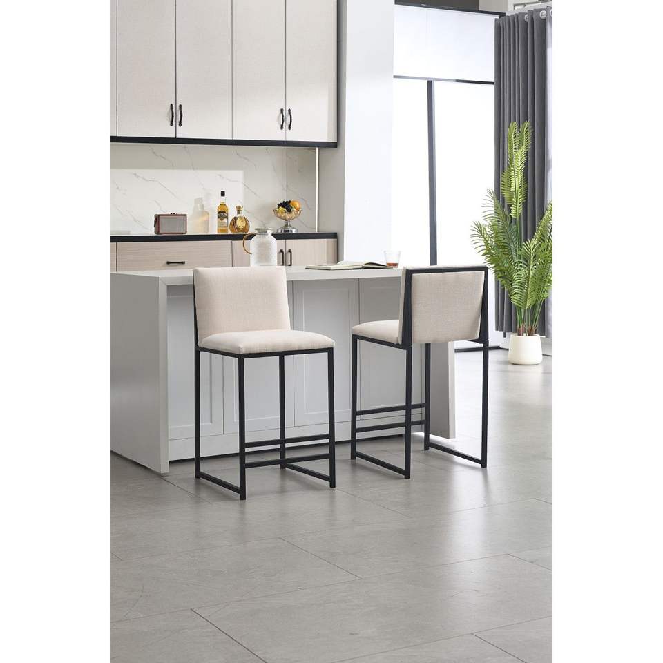 Set di 2 sgabelli da Bar altezza bancone sedie in lino imbottito con struttura poggiapiedi in metallo per cucina e sala da pranzo-avorio