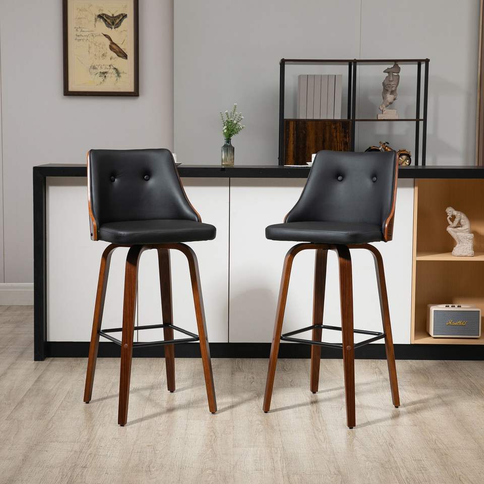 Set di 2 sgabelli da Bar girevoli con retro e poggiapiedi in pelle PU nero per sala da pranzo