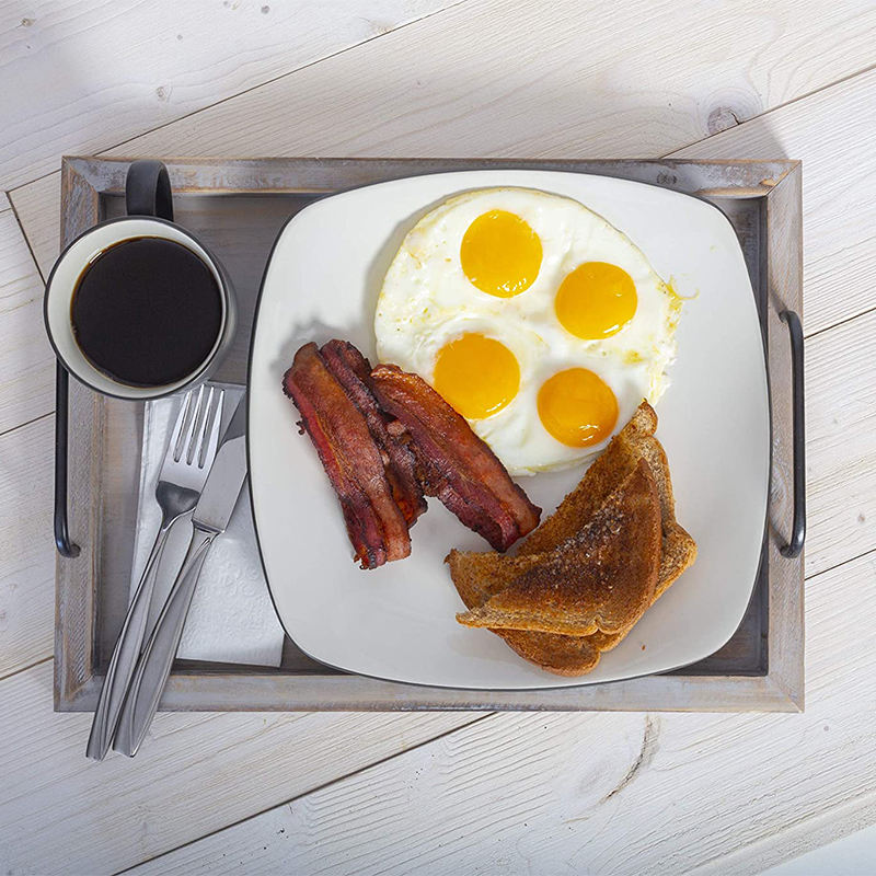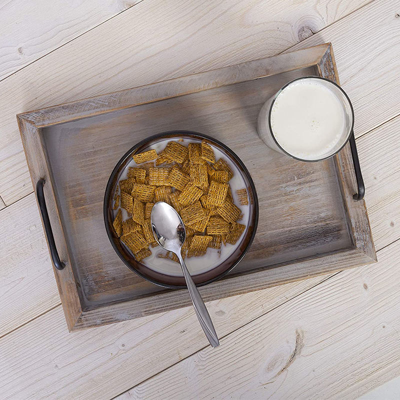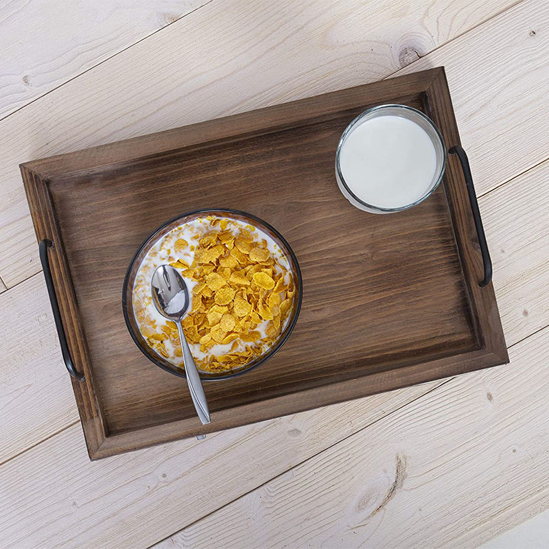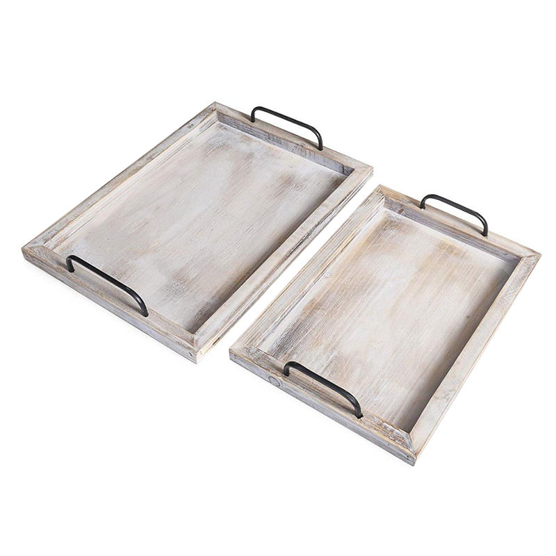 Set di 2 paese rustico colonica decorazione che serve piatti di nidificazione che servono vassoi vassoio di legno con manici in metallo