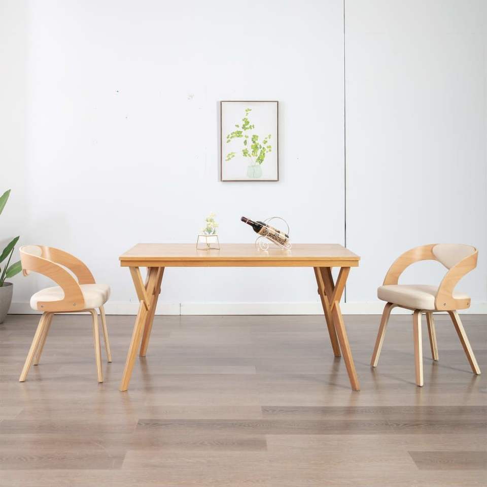 Set di 2 sedie da pranzo in finta pelle color crema con gambe in legno, stile moderno ed elegante per sala da pranzo