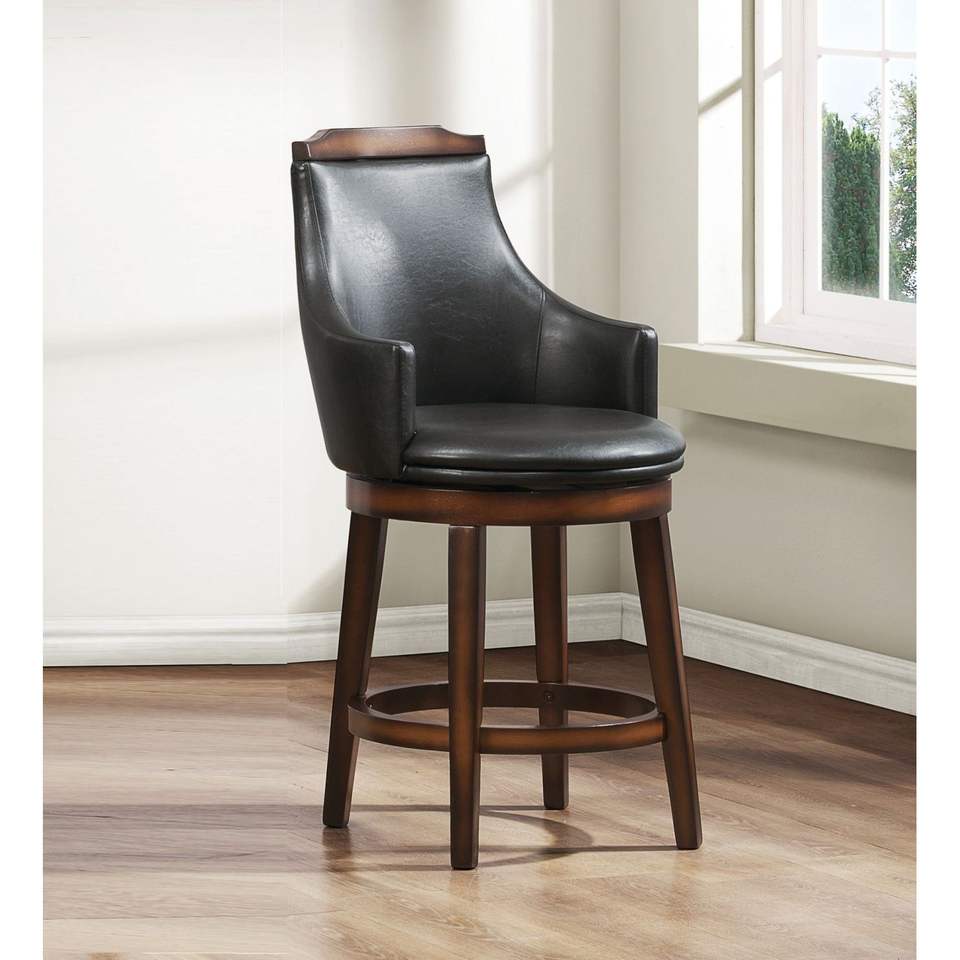 Set di 2 sedie da banco girevoli in legno marrone scuro in ecopelle per bar