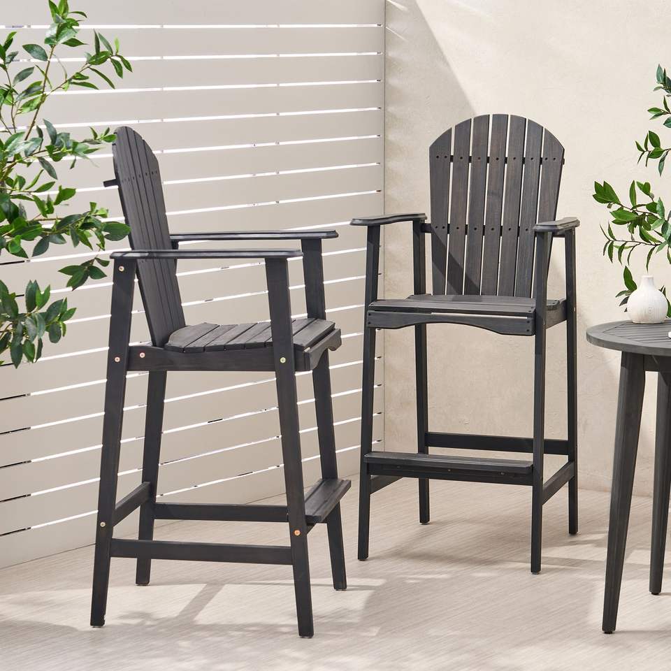 Set di 2 sgabelli Adirondack in legno di Acacia da esterno grigio scuro