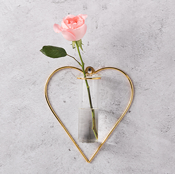 Set di 2 di Vetro Decorativo Del Cuore Del Fiore Vaso D'oro Vaso di Supporto In Metallo Con Cerniera Germoglio di Prova Tubi Vasi Display