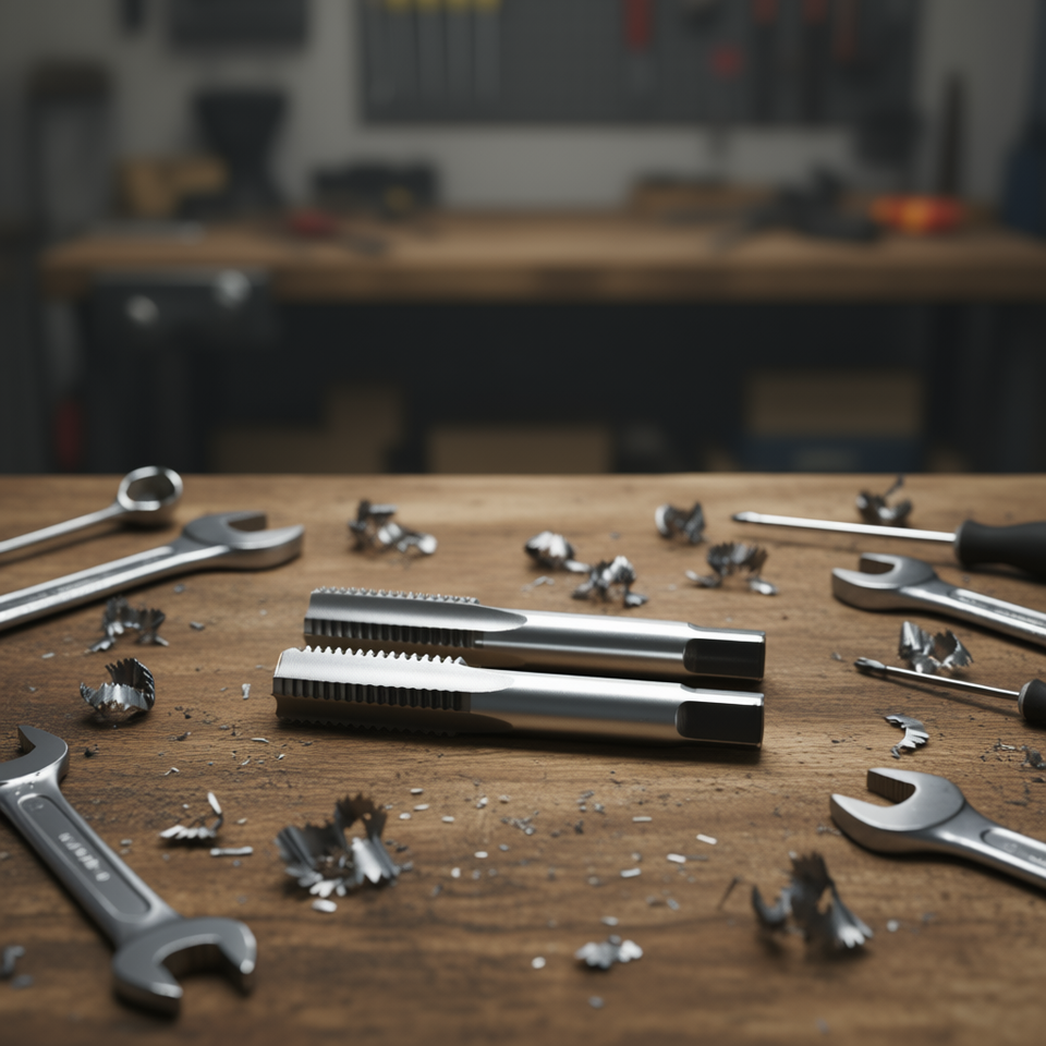 Set di 2 maschi da filettatura a passo fine in acciaio cromato per sgrossatura e rifinitura