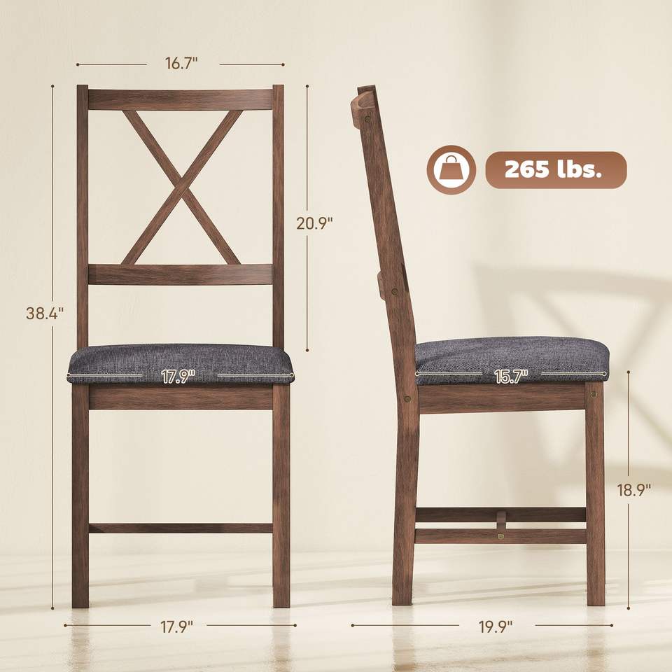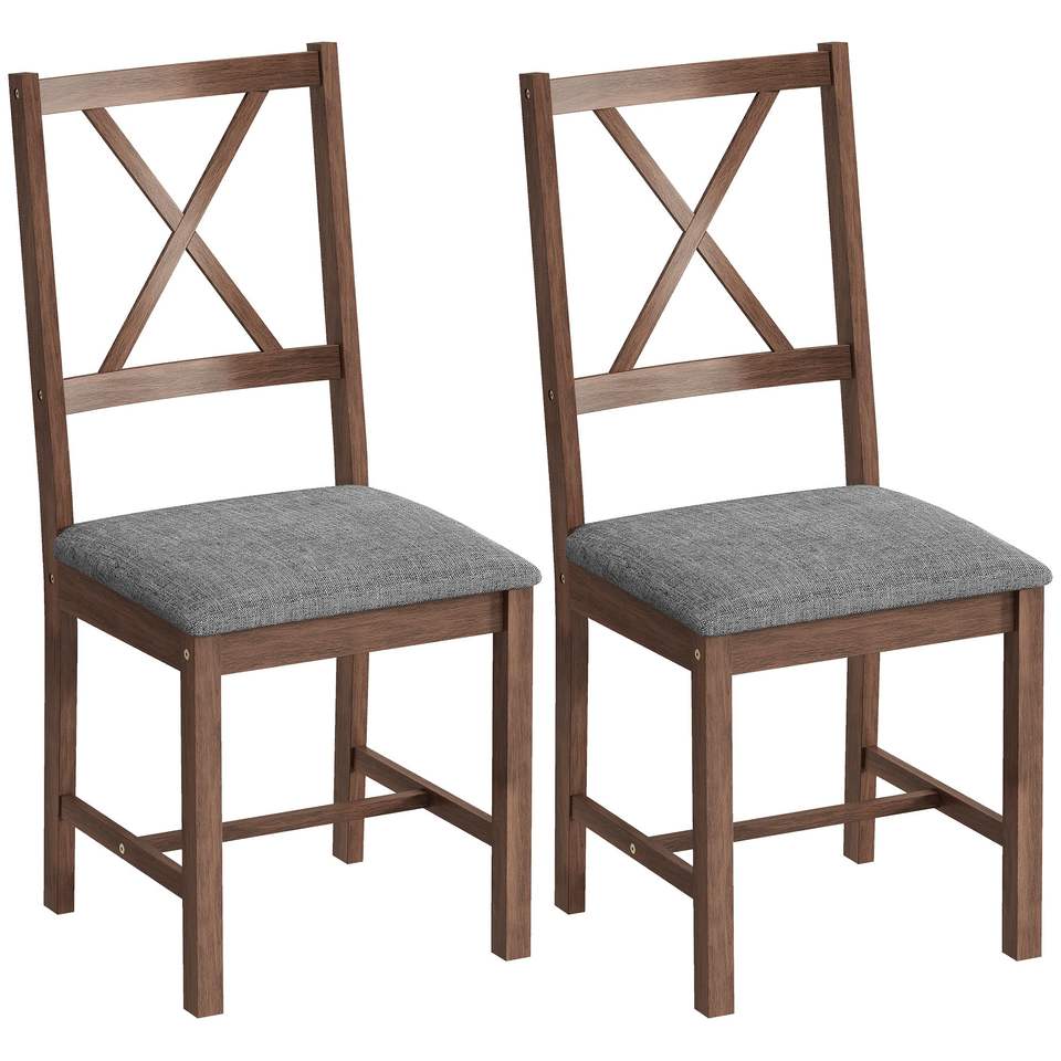 Set di 2 sedie da pranzo grigie imbottite con schienale a X, seduta imbottita e gambe in legno di gomma per cucina e sala da pranzo