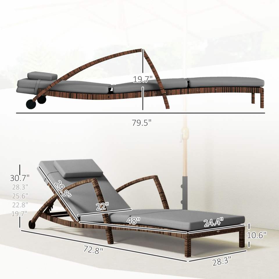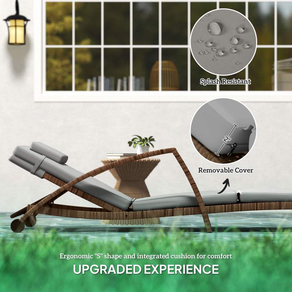 Set of 2 Gray Wicker Chaise Lounge Chair with Adjustable Back Wheels and Cushion Armrests for Outdoor Patio Lounging