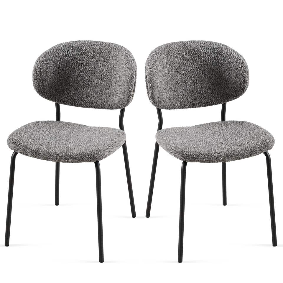 Set di 2 sedie da pranzo in tessuto bouclé grigio con gambe in metallo per sala da pranzo cucina e soggiorno