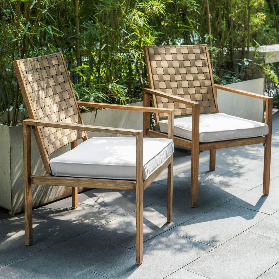 Set di 2 Sedie da Esterno Fatte a Mano per Patio, Terrazza e Giardino in Metallo con Cuscini Impermeabili
