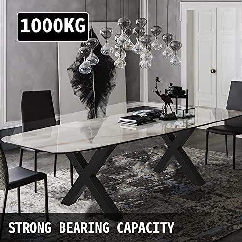 Set di 2 gambe per tavolo da pranzo in acciaio resistenti, altezza 28 pollici, larghezza 24 pollici, sezione quadrata da 3,1 pollici, struttura a X, gambe larghe 2 pollici